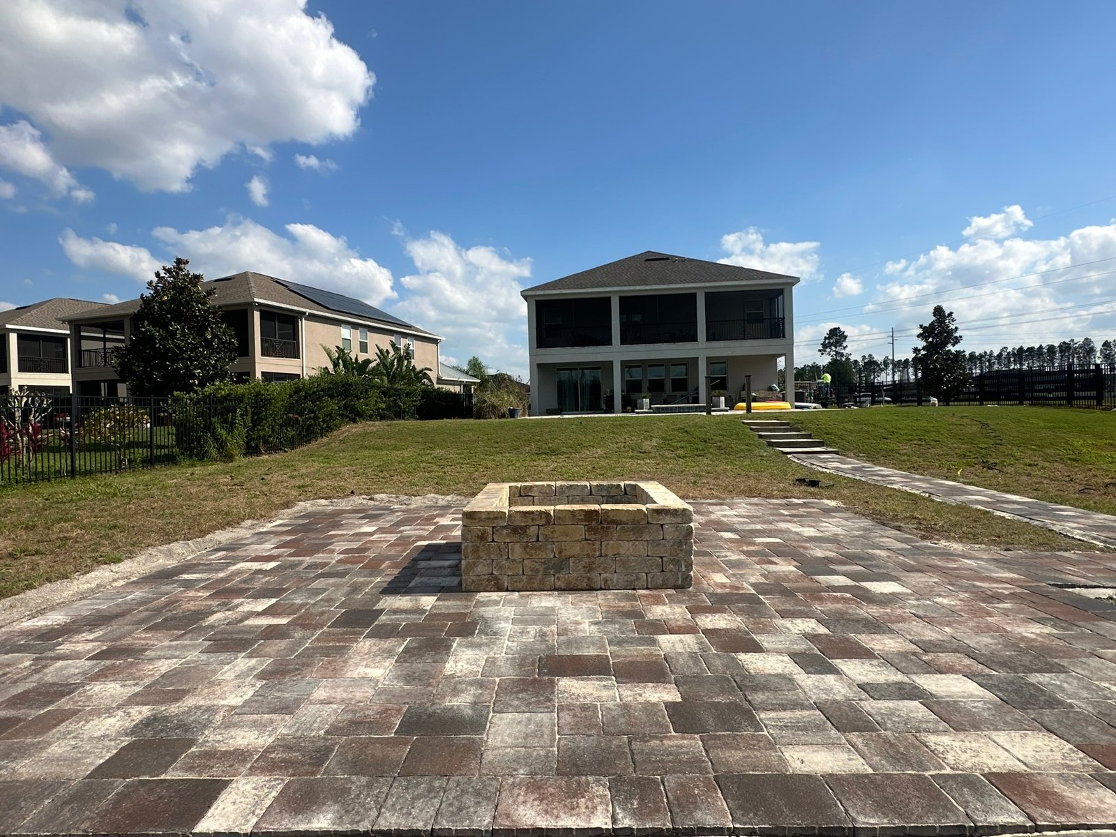 Built with durable materials and a timeless design, the fire pit becomes the centerpiece of the patio, bringing both comfort and elegance to the entire area.